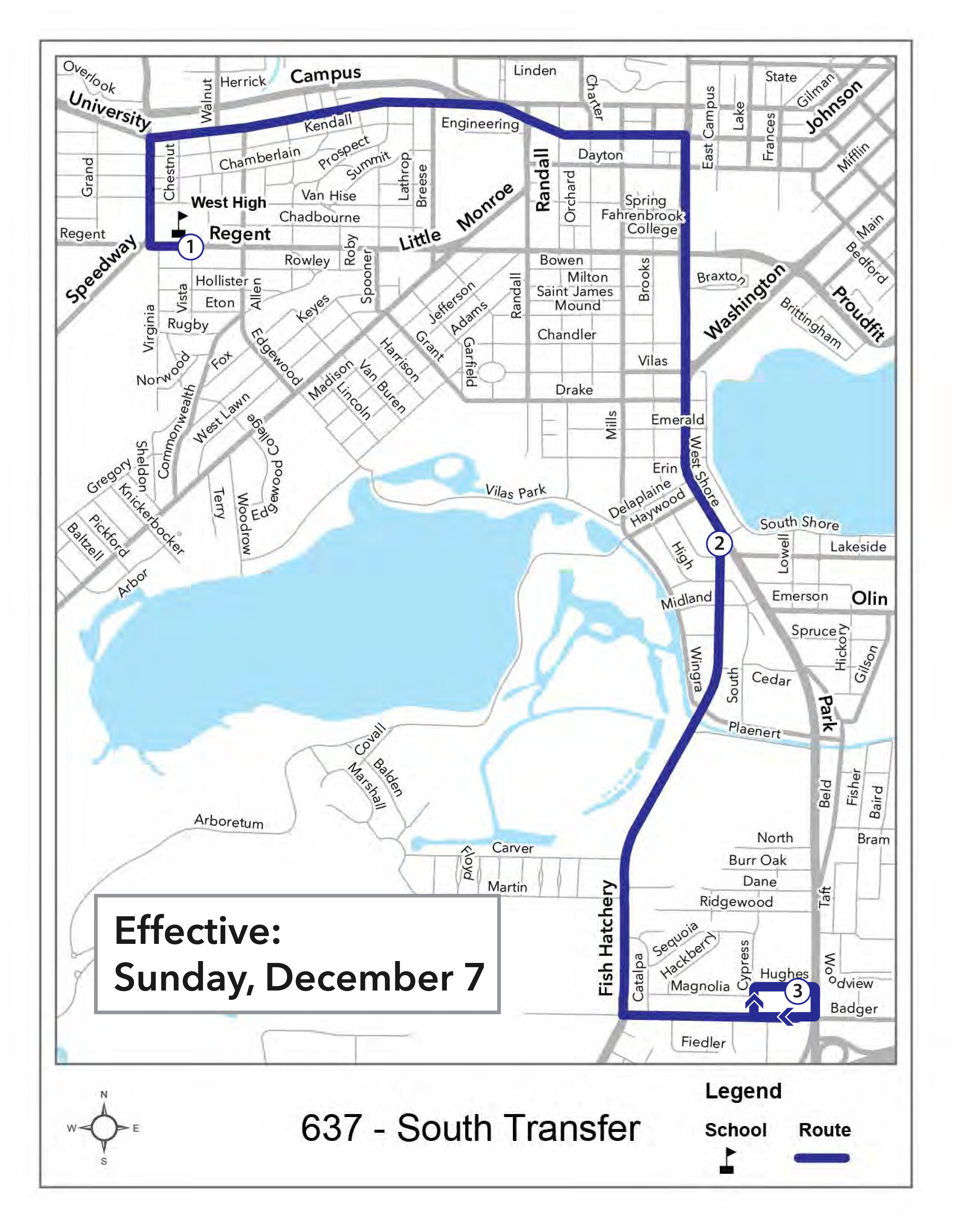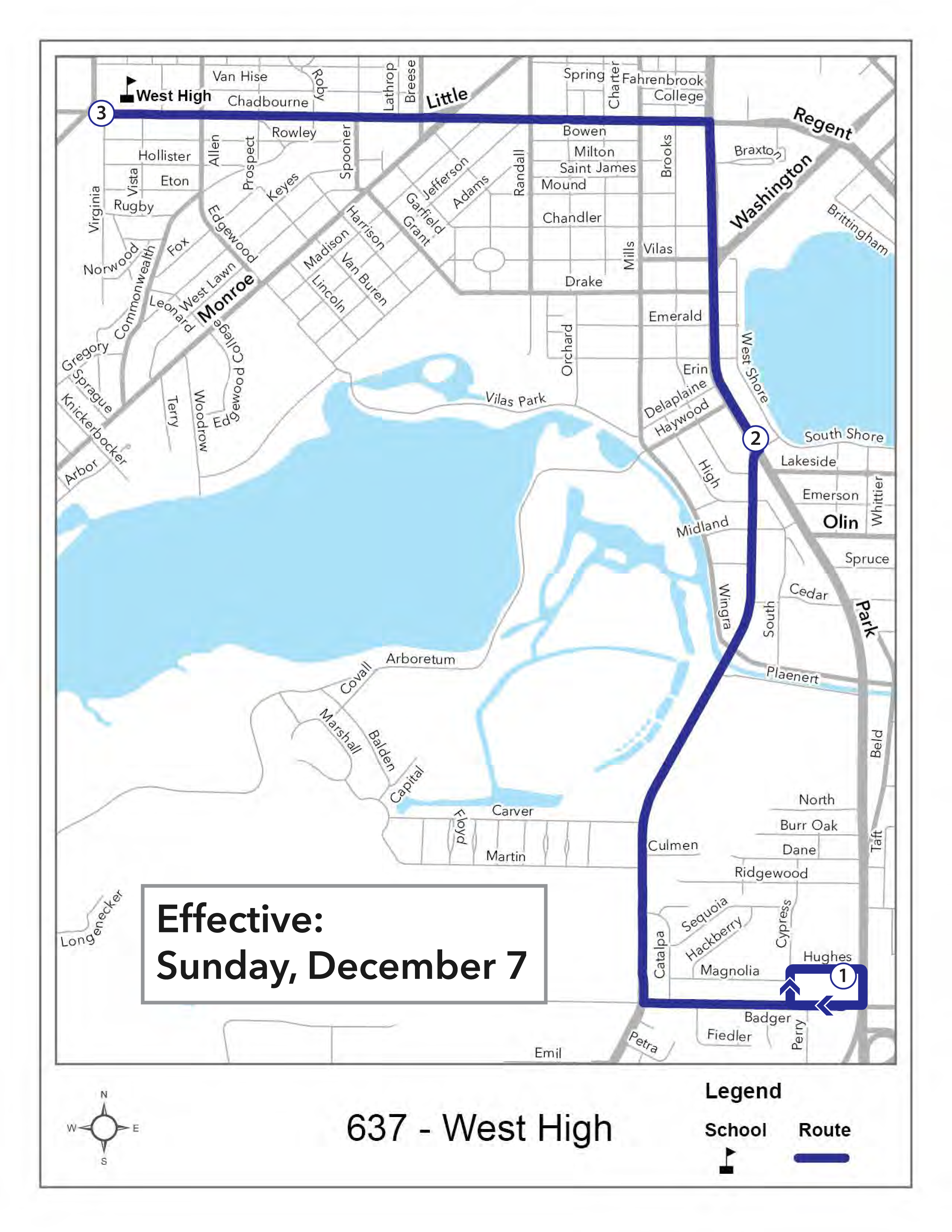 *This route is open to the general public and operates ONLY on days that the Madison Metropolitan School District is in session.