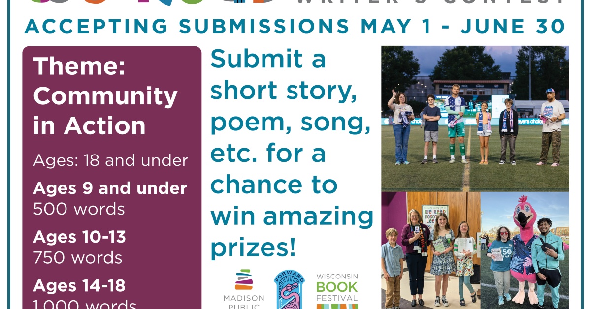 This annual contest, hosted by Madison Public Library in collaboration with Forward Madison FC and the Wisconsin Book Festival, is for kids in the Madison area. The library accepts submissions in English, Spanish, Hmong and other languages, and writing can be in the form of short stories, songs, poems, comics, graphic novels, and more.