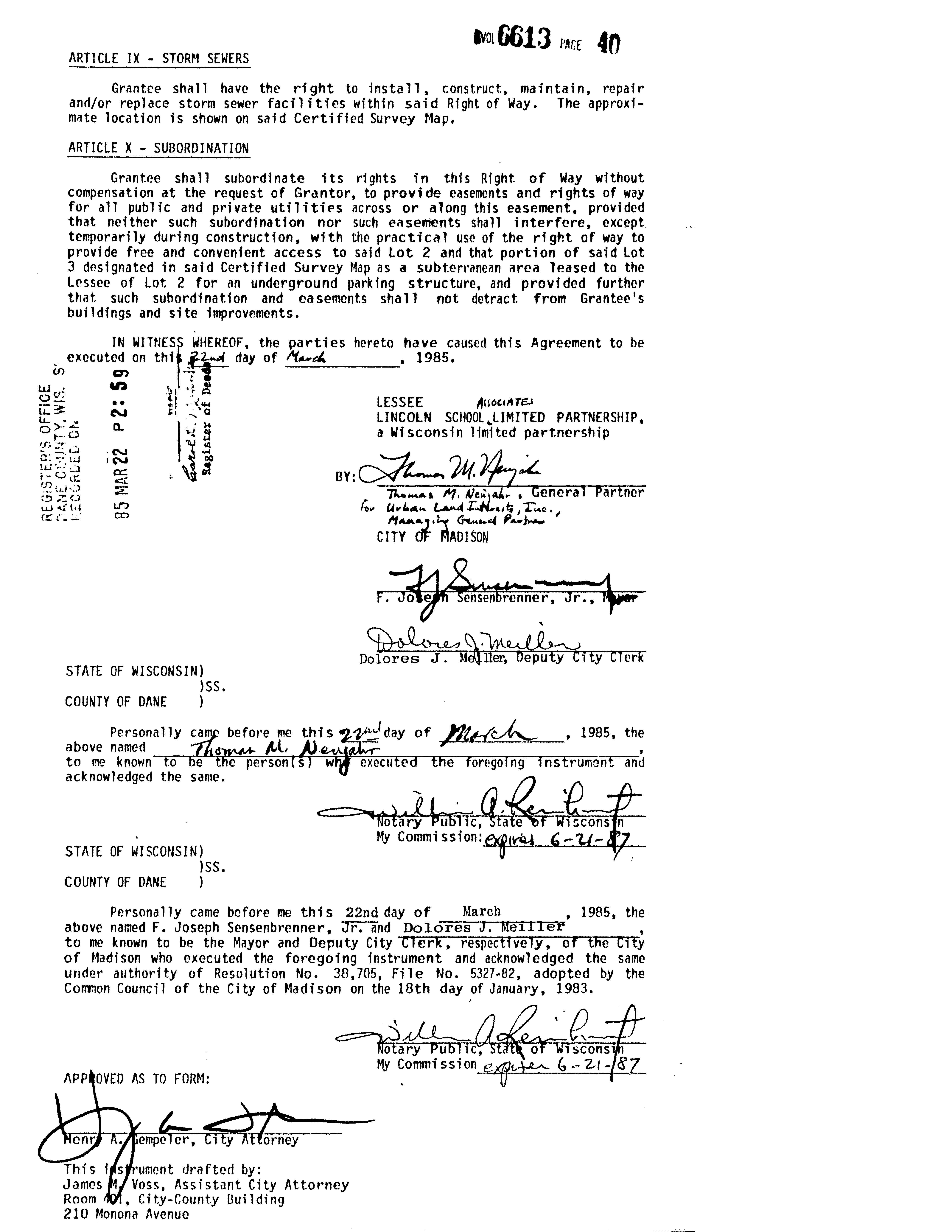 Per the 1985 agreement between Lincoln School Apartments and the City of Madison, Parks Division is responsible for the repair of the existing retaining wall supporting the entrance drive to the apartment building.