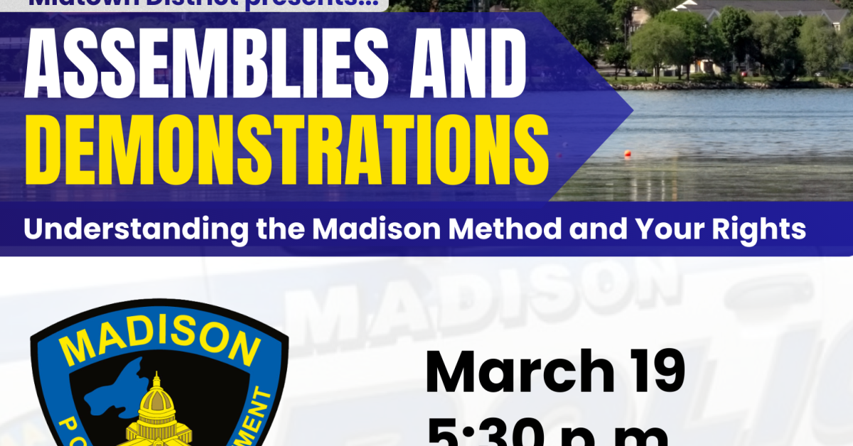postedThe Madison Police Department has two upcoming presentations covering a person's rights during assemblies and demonstrations.